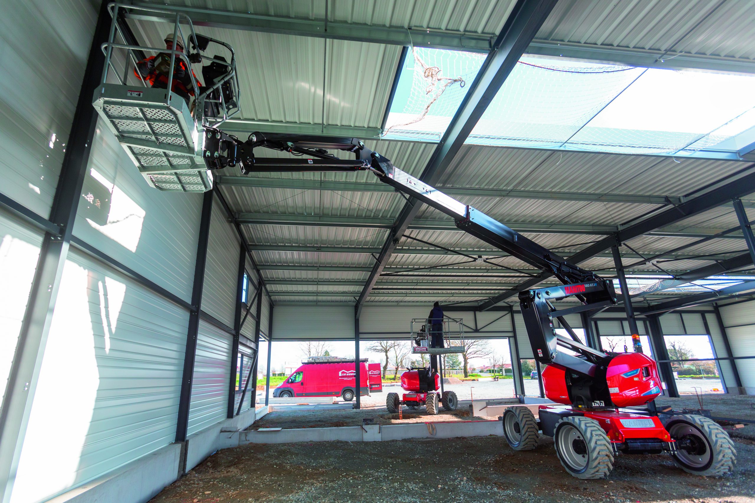 La nacelle 180 ATJe 4×4 100 % électrique atteint 18,19 m de hauteur et 10,33 m de déport. Ses 4 roues motrices et son essieu oscillant actif assurent mobilité et stabilité sur tous terrains. Capacité 250 kg, 2 personnes, silencieuse et zéro émission, idéale en intérieur comme en extérieur.
